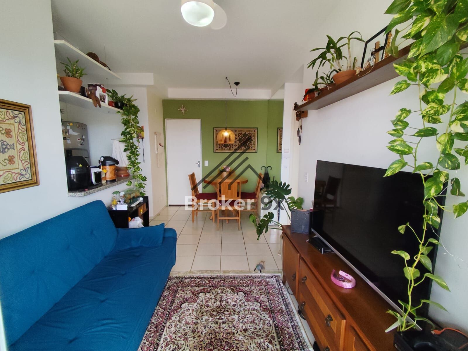 A sala de estar é ampla e aconchegante, perfeita para momentos de relaxamento ou para receber amigos e familiares. Todos os ambientes são equipados com ventiladores de teto, garantindo conforto térmico em qualquer estação do ano. A unidade também dispõe de uma vaga de garagem coberta, garantindo a proteção e segurança do veículo.