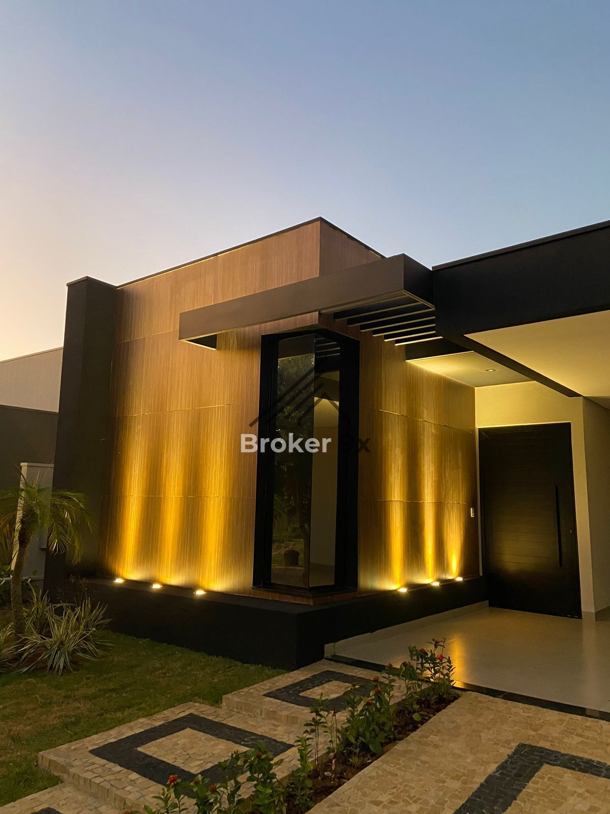 Fachada moderna, com 3 suítes, Sala de estar e jantar com pé direito alto, Cozinha e varanda gourmet com churrasqueira, Despensa, Lavabo externo e Ampla lavanderia .