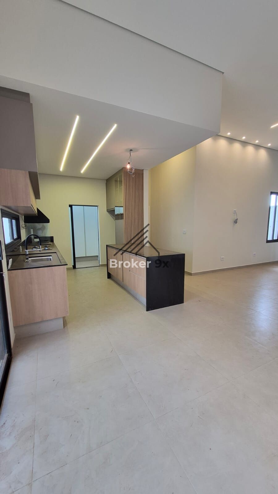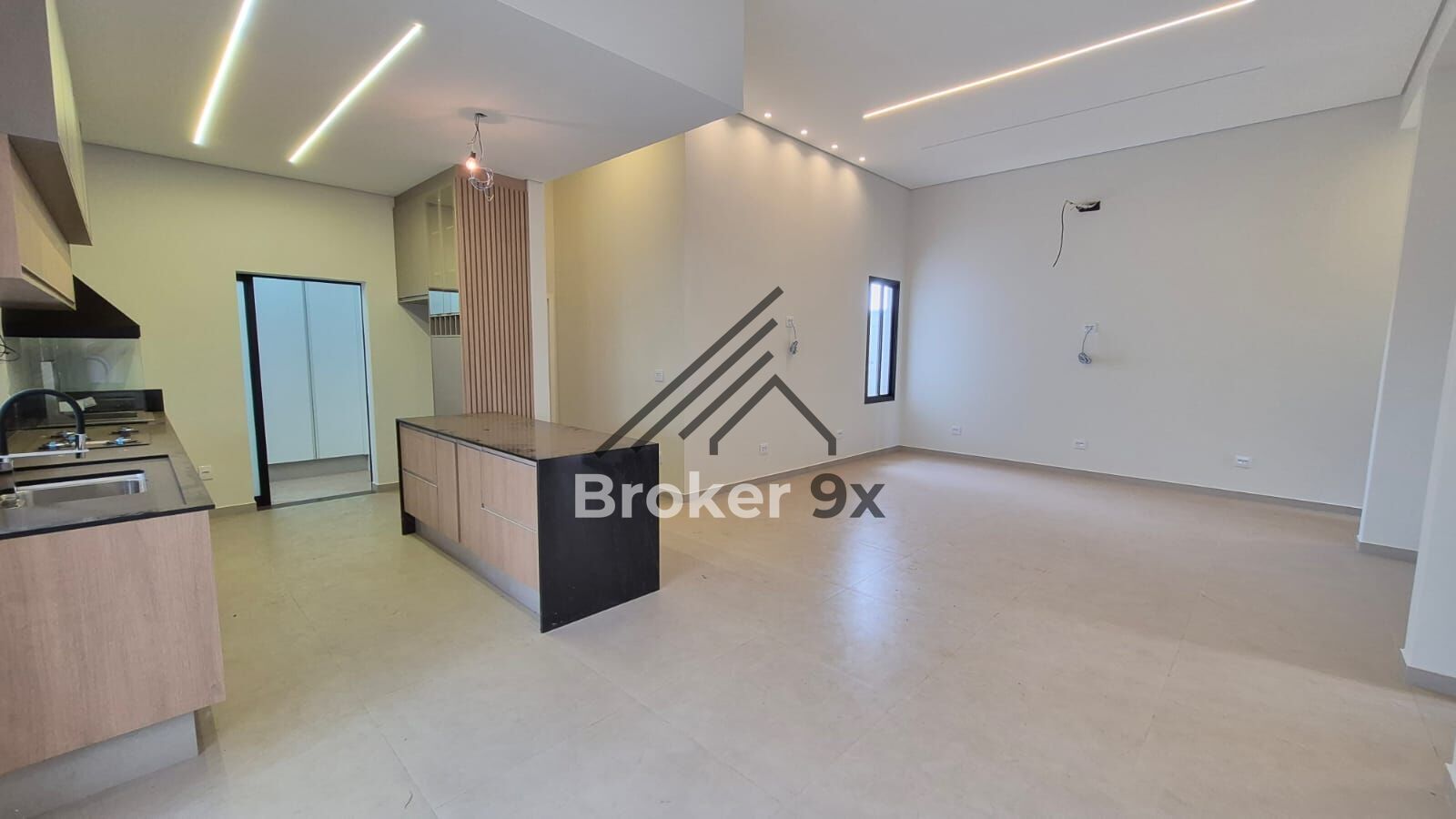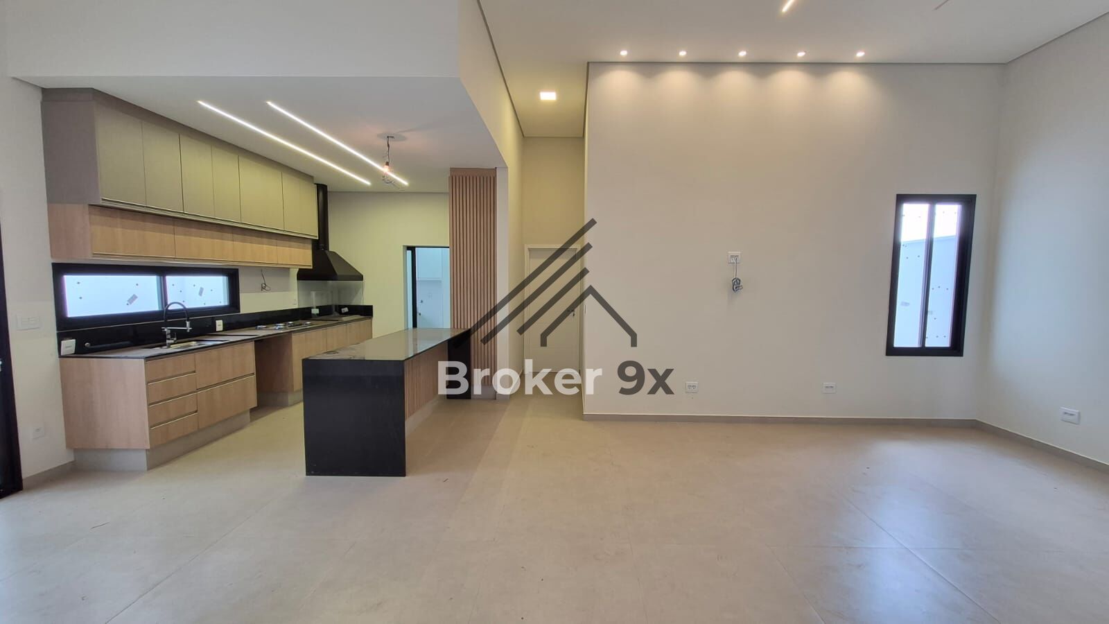 ✅ Sala grande integrada com a cozinha, criando um ambiente amplo e moderno para convívio e lazer.